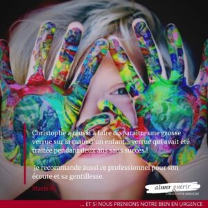 Christophe a réussi à faire disparaître une grosse verrue sur la main d'un enfant, ... verrue qui avait été traitée pendant deux ans sans succès. Je recommande aussi ce professionnel pour son écoute et sa gentillesse.