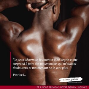 Presque Miracle. Je tiens à vous remercier de l’efficience de vos soins à distance. Je ne pouvais plus monter les bras qu’à 45 degrés (rapport médecin d’il y a moins de 3 semaines). Je peux désormais les monter à 80 degrés et me surprend à faire des mouvements qui m’étaient douloureux et maintenant ne le sont plus. Mon genou aussi va mieux - et tout cela, malgré la distance Sénégal/France, ce qui prouve que l’international ne change rien à vos dons ! »