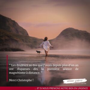 Les douleurs au dos que j’avais depuis plus d’un an ont disparues dès la première séance de magnétisme à distance avec Christophe Rebours. Après un échange par téléphone afin d’expliquer mes douleurs, nous avons raccroché le combiné. Au bout de quelques minutes, j’ai ressenti une intense chaleur dans toute la partie gauche du corps. La télépathie garde sa part de mystère mais elle est d’une efficacité redoutable. Merci Christophe !