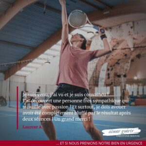 Un passionné de tennis libéré d'une tendinite au coude droit témoigne.