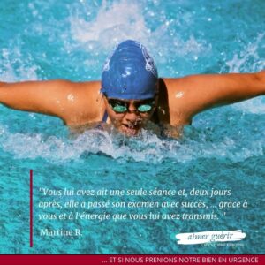 Je vous ai amené ma petite fille qui passait un examen professionnel de natation et qui avait perdu confiance ; et pour cause … elle était stressée après avoir raté cinq fois cette épreuve. Vous lui avez fait une seule séance et, deux jours après, elle a passé son examen avec succès, … grâce à vous et à l'énergie que vous lui avez transmis. Mille mercis Monsieur Rebours.
