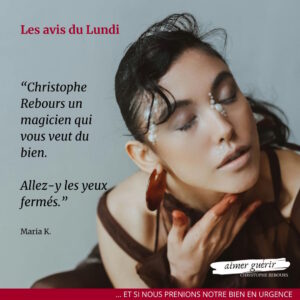Monsieur Rebours, c'est un magicien. En détresse la semaine dernière pour une migraine qui m’était très très compliquée à gérer. Il a fait une séance à distance pour me soulager. Et, … exceptionnel, … j'ai ressenti de la légèreté dans ma tête et du froid. Une heure après, … plus rien. Vous êtes accessible, avec un cœur énorme, et dévoué aux autres.