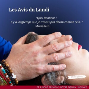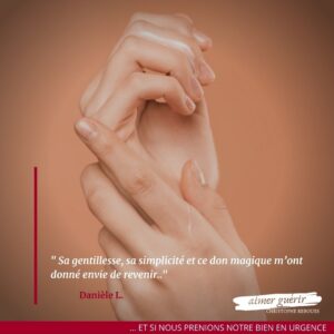 Je souffre des mains depuis des années et l’arthrose a gagné du terrain. Très fatiguée d’avoir mal, j’ai rencontré Christophe Rebours. Sa gentillesse, sa simplicité et ce don magique m’ont donné envie de revenir. Mes pouces me font moins de mal. Je suis donc plus détendue, moins stressée.